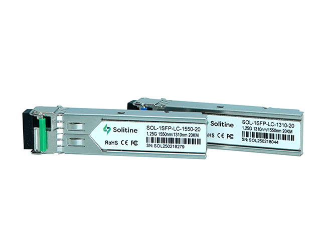 The Solitine 1.25G SFP BIDI LC Module (Pair) offers reliable and high-speed Gigabit Ethernet (1000BASE-BX) connectivity over single-mode fiber up to 20km. Designed for bi-directional transmission, it uses Tx 1310nm / Rx 1550nm wavelengths with an LC connector for single-fiber duplex operation. Equipped with Digital Diagnostic Monitoring (DDM/DOM), it allows real-time performance tracking. This module features low power consumption (<1W), is hot-swappable, and ensures smooth integration into network environments. Fully compatible with Cisco, Huawei, Juniper, and other major networking equipment, itβs the perfect choice for enterprise and ISP networks.