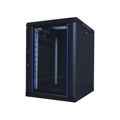 This is a 15U wall mount rack with a single section and tempered dark blue glass door with a push lock. It includes 2 fans, 1 PDU with 6 ports, 2 L styles, and removable side panels. The thickness of the rack is 1.2mm.The 15U wall mount rack is an ideal solution for small to medium-sized businesses that need to save floor space. This rack is designed to be mounted on a wall and has a single section. The front door of the rack is made of tempered dark blue glass and comes with a push lock. The tempered glass provides an extra layer of security to your equipment while still allowing you to monitor the equipment inside the rack. The rack comes with two fans that help to keep your equipment cool, ensuring optimal performance. Additionally, it includes a PDU with 6 ports and 2 L styles. The PDU is designed to distribute power to all your equipment inside the rack, while the L styles help to organize your cables. The removable side panel package of 25 cages, 25 nuts, 25 screws, and 25 washers make it easy to install and maintain your equipment. The thickness of the rack is 1.2mm, which adds to its durability and strength. Overall, the 15U wall mount rack is a reliable, secure, and cost-effective solution for businesses looking to save space without compromising on functionality or performance.