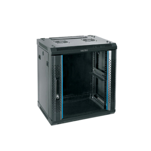 This is a 9U wall mount server cabinet with a tempered dark blue glass front door that has a push lock. It comes with 2 fans, 1 PDU with 6 ports, 2 L-style brackets, and removable side panels with a package of 25 cages, nuts, screws, and washers. The thickness of the cabinet is 1.2 mm.The 9U wall mount server cabinet is designed to provide secure and organized storage for networking equipment, servers, and other rackmount devices. The cabinet is constructed with a 1.2 mm thick single section frame that ensures durability and reliability. The front door of the cabinet is made of tempered dark blue glass and features a push lock that enhances security. The door also provides visibility into the cabinet, allowing users to monitor the equipment without opening the door. The cabinet comes with 2 fans that provide efficient cooling to the equipment, ensuring optimal performance. The PDU with 6 ports and 2 L-style brackets provide power distribution and cable management, helping to keep the cabinet tidy and organized. The removable side panels make it easy to access the equipment and install or remove devices. The package of 25 cages, nuts, screws, and washers provides everything needed to install equipment in the cabinet. Overall, the 9U wall mount server cabinet is a reliable and efficient solution for small to medium-sized network and server setups. Its compact size and wall-mount design make it an ideal choice for environments with limited floor space.