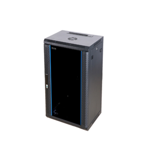 This is a 12U wall mount rack with a tempered dark blue glass front door that has a push lock. It includes 2 fans, 1 PDU with 6 ports, and 2 L-style brackets. The package also includes a removable side panel with a package of 25 cages, nuts, screws, and washers. The thickness of the rack is 1.2 mm.