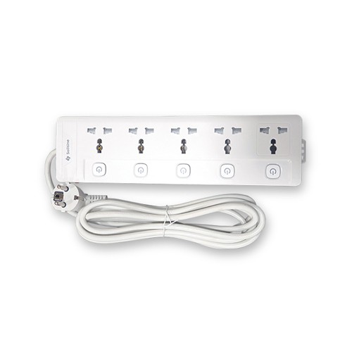 his Solitine power strip features a EU type 2-pin plug, 5 ports, individual switches, and 5 meter cable length. It has a maximum voltage of 250v~, max power of 3250 Watt, and max current of 13 Amp. The body and internal materials are made of 100% virgin plastic and copper, respectively. It comes with a 3-year warranty and is made in China with USA origin.The Solitine 5-port power strip is an ideal solution for powering multiple devices at the same time. It is designed with a EU type 2-pin plug and has a cable length of 5 meters, providing ample reach for your devices. With a maximum voltage of 250v~, max power of 3250 Watt, and max current of 13 Amp, this power strip can handle most high-powered devices such as computers, printers, and other office equipment. The body and internal materials of this power strip are made of 100% virgin plastic and copper, respectively, ensuring high-quality and durability. It also features a safety shutter to prevent accidental electrical shock and individual switches for each port, allowing you to easily turn on/off each device as needed. The power strip comes in a sleek white color and is made in China with USA origin. In addition, the Solitine power strip comes with a 3-year warranty, making it a reliable choice for your home or office. The warranty also covers burn cases, giving you peace of mind and ensuring that your investment is protected.