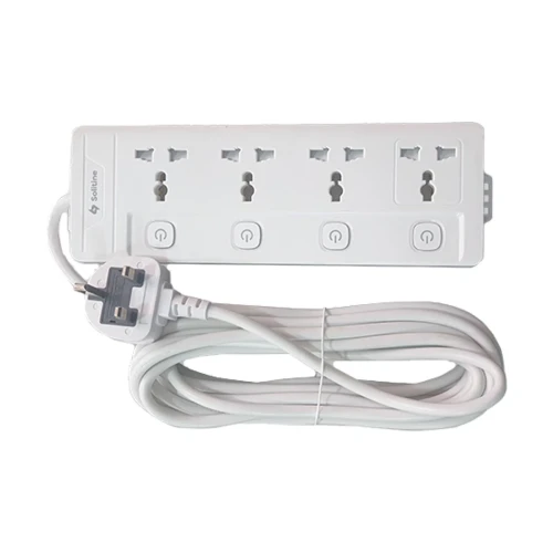 The Solitine 4-Port UK Type (3 Pin) Power Strip is an ideal solution for powering multiple devices simultaneously. With a maximum voltage of 250v~, a maximum power output of 3250 watts, and a maximum current of 13 amps, this power strip is perfect for use with a variety of electrical appliances. The body is made of 100% virgin plastic, while the internal materials are made of 100% virgin copper, ensuring both durability and safety. The power strip comes with a 3-meter cable length and features a safety shutter and individual switches for each port. It is available in white and comes with a 3-year warranty, with burn cases being acceptable. The Solitine power strip is made in China but has its origin in the USA.