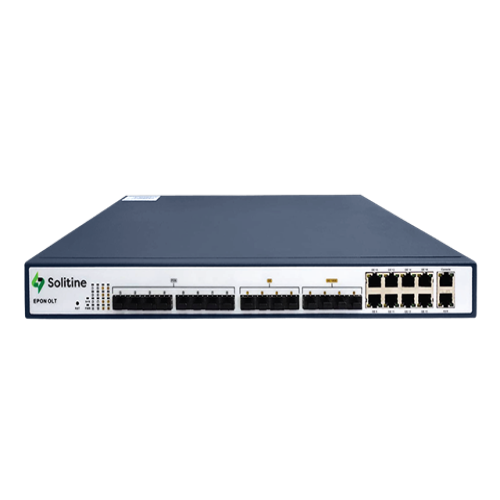 The Solitine SOL1008-DP 8 Port 10G EPON OLT has 8 port. High-speed internet access for up to 256 Optical Network Units (ONUs) is provided by the Solitine SOL1008-DP 8 Port 10G EPON OLT, which has a splitting ratio of 1:64 per PON port. The Solitine SOL1008-DP OLT includes four PON ports with SC/UPC connectors, SFP slots, and support for the EPON standard and 10G speed. The AC power supply in the Solitine SOL1008-DP OLT accepts input voltages between 100 and 240V. Numerous features are supported by the Solitine OLT, including IEEE802.12x, VLAN, Radious, Tacacs+, HTTPS, and SSH V2.0. Additionally supporting SNMP, Telnet, HTTPS, and SSH login access management for simple configuration and monitoring is the Solitine SOL1008-DP 8 Port 10G EPON OLT. A versatile and dependable option for broadband access networks, the Solitine SOL1008-DP OLT is compatible with any brand of EPON ONU.